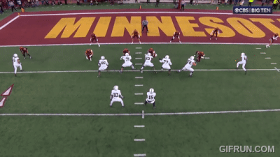 Above– Look up top: two Gophers defenders are covering one motioning ‘threat.’ That will be exploited later in the game for a TD.