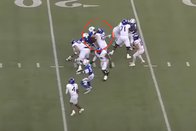 Above– You can see the lack of pop in his punch. The SMU LB doesn’t move an inch on contact.