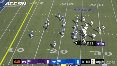 SMU smacked TCU 66-42 in a game that saw the Horned Frogs turn the ball over five times, including two defensive touchdowns for the Mustangs. TCU’s offensive line allowed one sack, five tackles for loss, and averaged only two yards per carry against the SMU defense. Former Miami DE Elijah Roberts came away with two TFL’s and one sack vs. The Frogs.