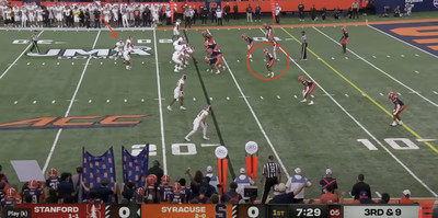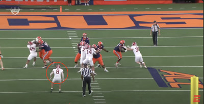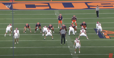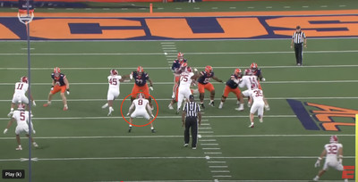 Above– Offenses use shifts and motion to force the defense to communicate and adjust. Syracuse is going to have this LB move with the RB that’s in motion.