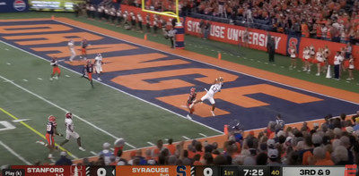 Above– And then you have to finish the play. Great athletic grab from the Stanford WR.