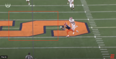 Above– Syracuse thinks they’re setting up the quick swing screen but in reality it’s a “money” call and the WR isn’t blocking, he’s faking it before running switch.