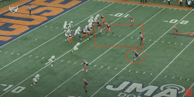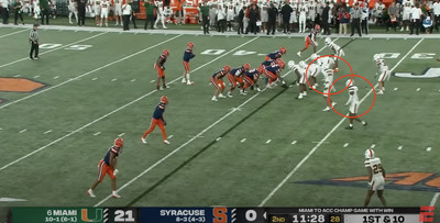 Above– With a 2-high look ‘Cuse leaves the middle of the field open for something like “6” with a snap off in space or Y-Cross.