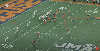 Above– McCord sees space open up and the slot is going to sit in that space on what I called a “pop” RPO tag.